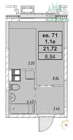 Планировка: Свободная студия, позволяющая воплотить любые дизайнерские идеи и создать интерьер своей мечты.
