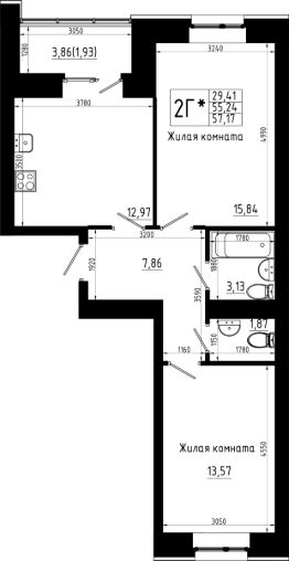 Продается 2комнатная квартира 158 общей площадью: 57.17 кв.м. на 3 этаже в 2 секции 9 этажного дома.