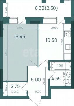 Общая площадь составляет- 50 кв м.