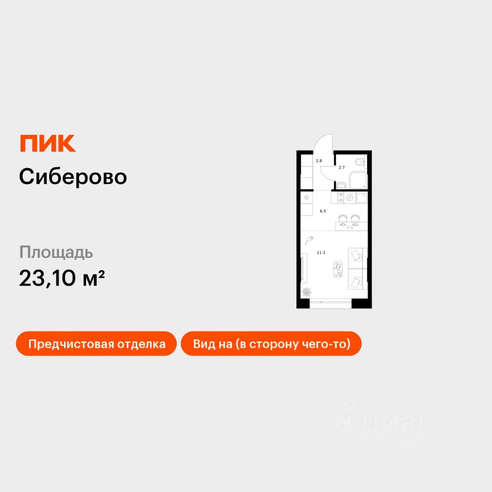Продаётся квартира-студия площадью 23,1 кв.м на 1 этаже 26 этажного дома (Корпус 3, Секция 5) проекта ПИК Сиберово. Светлый просторный подъезд на уровне земли, функциональная планировка, большие окна, предчистовая отделка.