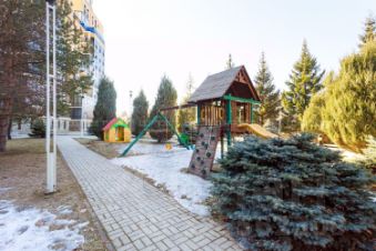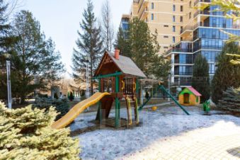 Охраняемая придомовая территория с видеонаблюдением. Тихий двор с беседкой и зеленой детской площадкой. Большая площадь газонов обеспечивает чистый воздух в самом центре Казани.