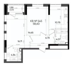 Общая площадь58,6 м²