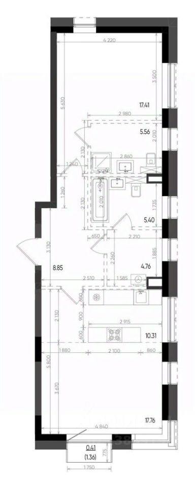 Жилая площадь35,2 м²