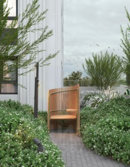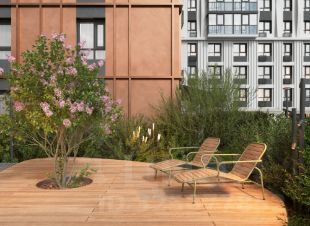 - Двор на стилобате: приватное благоустроенное пространство без машин
