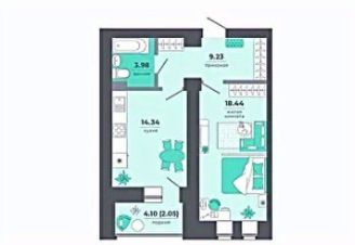 просторная квартира (площадь квартиры без учета лоджии составляет 43,93 кв. м, из которых 18,43 кв. м.- жилая площадь, а 14,34 кв. м - кухня) с функциональной планировкой, изолированными комнатами