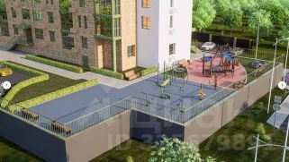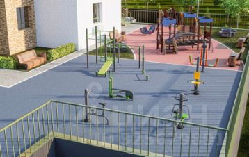 обустроенный двоp с современной детской площадкой с безопасным покрытием, фитнес-зоной с work-out тренажерами