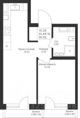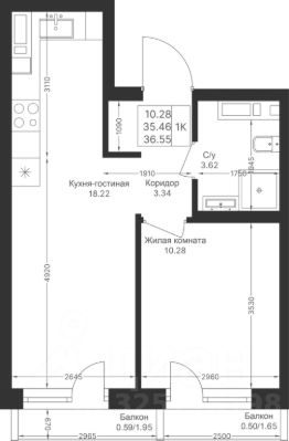 Продается 1 Евро-комнатная квартира 38 площадью 36,55 кв.м на 6 этаже в строящемся доме проекта "Мой Ритм" компании "Ак Барс Дом".