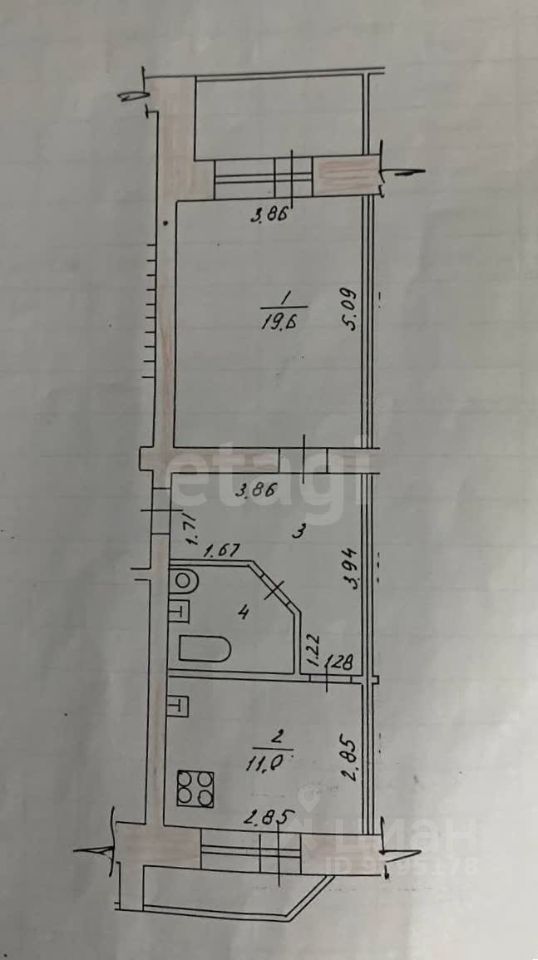 1 балкон (выход с кухни), из комнаты выход на лоджию