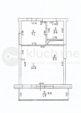 Общая площадь 30,6 м2 (+застекленный балкон)