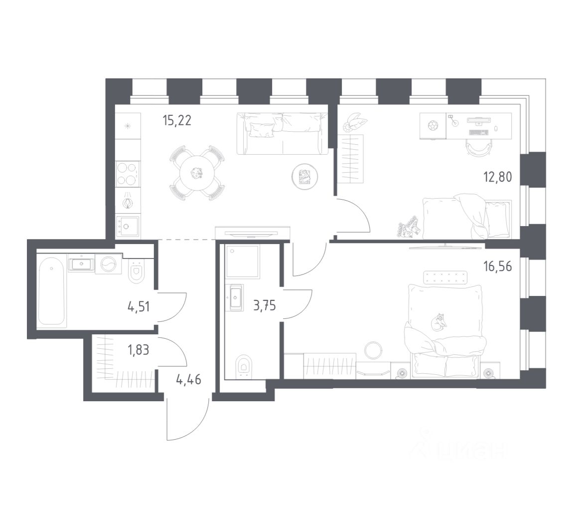 Строим кварталы для жизни с заботой о будущем. Предлагается 2-комнатная квартира комфорт-класса площадью 59.13 кв.м в корпусе 1КВ на 3-м этаже, в жилом комплексе "Зилант Премьер".