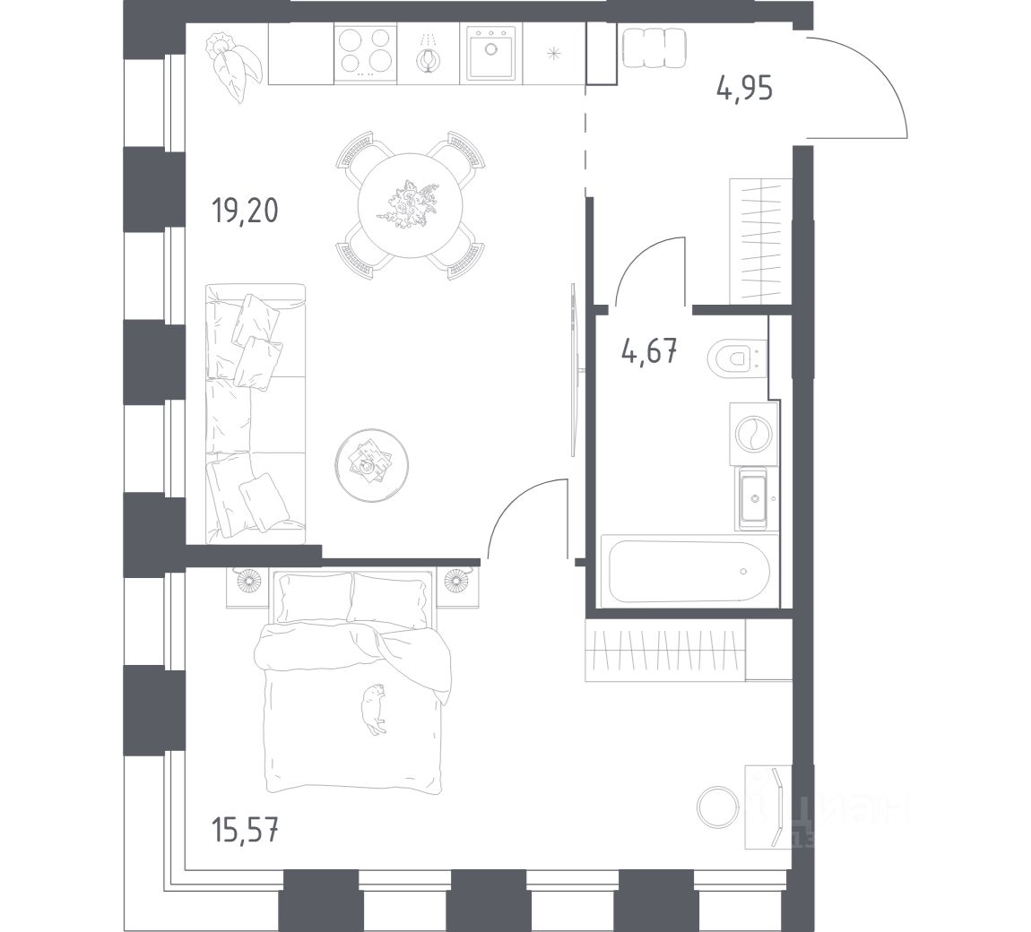 Строим кварталы для жизни с заботой о будущем. Предлагается 1-комнатная квартира комфорт-класса площадью 44.39 кв.м в корпусе 1КВ на 4-м этаже, в жилом комплексе "Зилант Премьер".