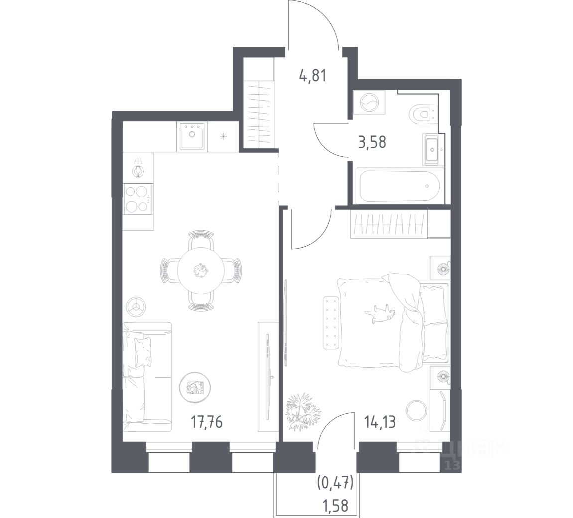 Строим кварталы для жизни с заботой о будущем. Предлагается 1-комнатная квартира комфорт-класса площадью 40.75 кв.м в корпусе 1КВ на 11-м этаже, в жилом комплексе "Зилант Премьер".