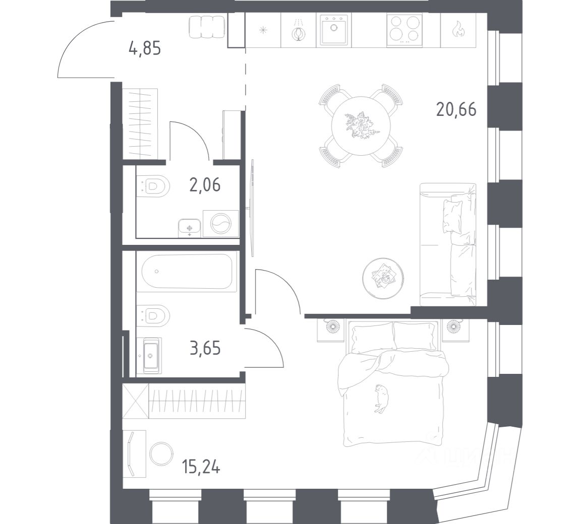 Строим кварталы для жизни с заботой о будущем. Предлагается 1-комнатная квартира комфорт-класса площадью 46.46 кв.м в корпусе 1КВ на 11-м этаже, в жилом комплексе "Зилант Премьер".