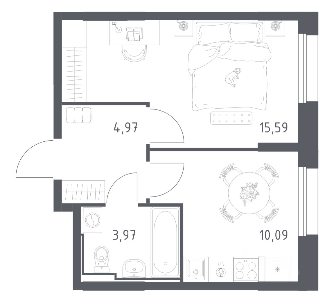По вашему желанию мы подготовим в вашей квартире все для комфортной жизни. Откройте дверь своим ключом и пройдитесь по комнатам. Там уже будет мебель, светильники и другие элементы декора. А на кухне бежевых оттенков есть все, чтобы сразу приготовить вкусный ужин для близких.