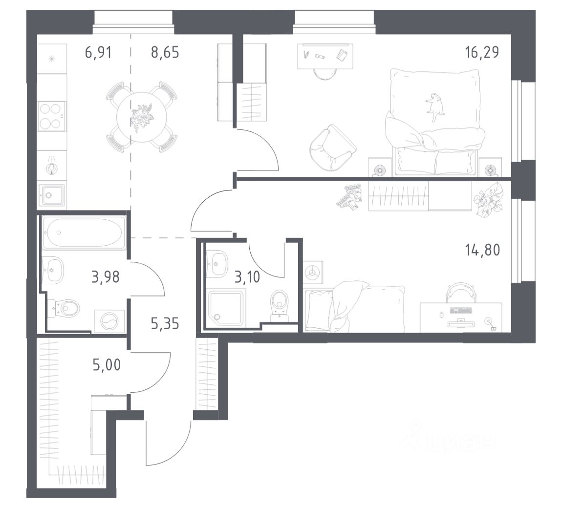Если хотите сразу отпраздновать новоселье, поручите нам работы по отделке. Мы установим двери, окна и сантехнику, положим ламинат и плитку. На стенах будут обои, которые можно перекрашивать до 8 раз.