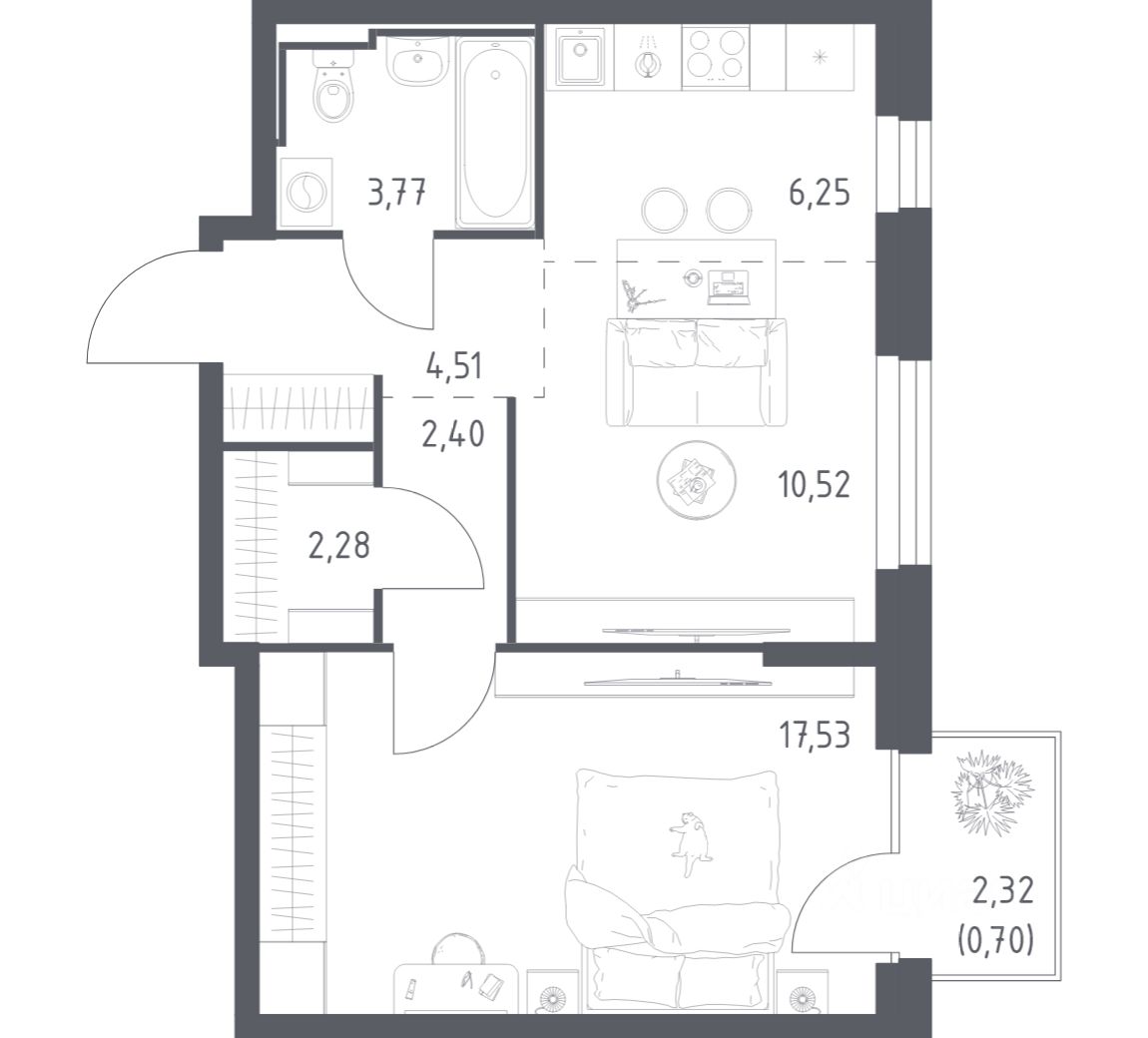 47,96 м²