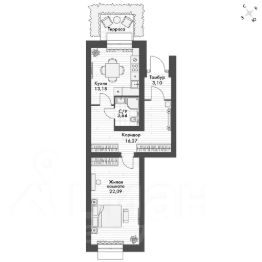 Продаётся 1-к квартира номер 1 общей площадью 57.1 кв.м. на 1-м этаже 4 этажного здания. Отделка Whitebox. Цена с учётом скидки.
