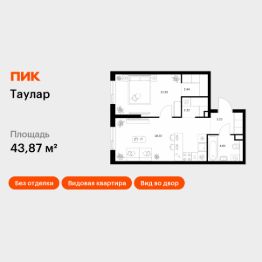 Продаётся 1-комн. квартира площадью 43,87 кв.м на 15 этаже 24 этажного дома (Корпус 3, Секция 3) проекта ПИК Таулар. Светлый просторный подъезд на уровне земли, функциональная планировка, большие окна, без отделки.