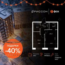 Продаётся 1-к квартира номер 266 общей площадью 39.3 кв.м. на 16-м этаже 19 этажного здания. Отделка Whitebox. Цена с учётом скидки.