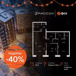 Продаётся 3-к квартира номер 233 общей площадью 66.8 кв.м. на 11-м этаже 19 этажного здания. Отделка Whitebox. Цена с учётом скидки.