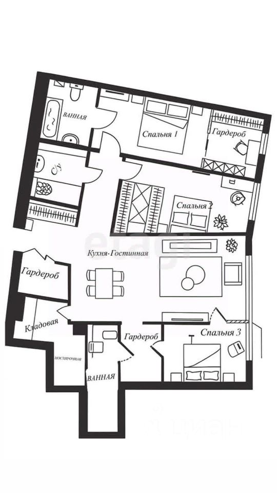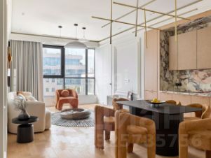 Квартира расположена на 4 этаже. Планировка продумана до мелочей: просторная кухня-гостиная, три изолированные спальни, включая мастер-спальню, отдельная постирочная зона, гардеробные. Окна выходят во двор, установлены панорамные энергосберегающие окна Schuco с высокой шумоизоляцией.