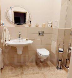 Удобный холл с большим зеркальным зонированным шкафом , просторный сан. узел.