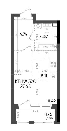 Общая площадь27,4 м²