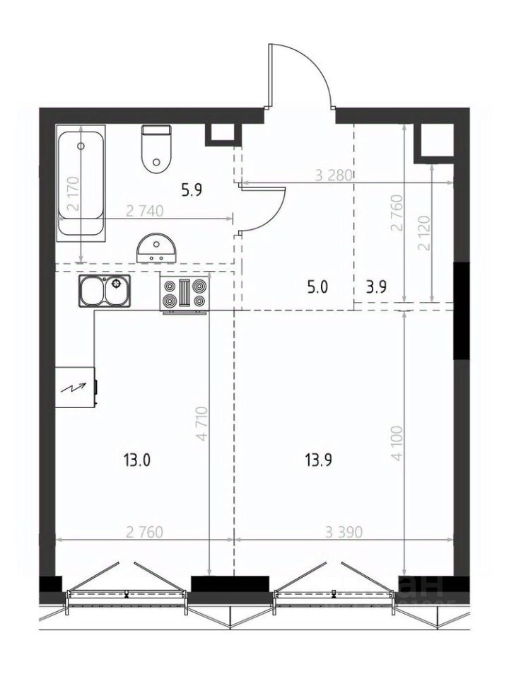 Жилая площадь13,9 м²