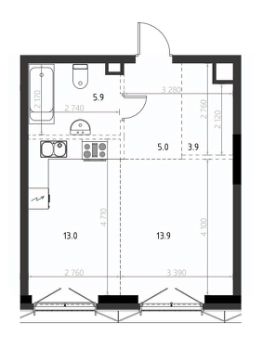 13,9 м²