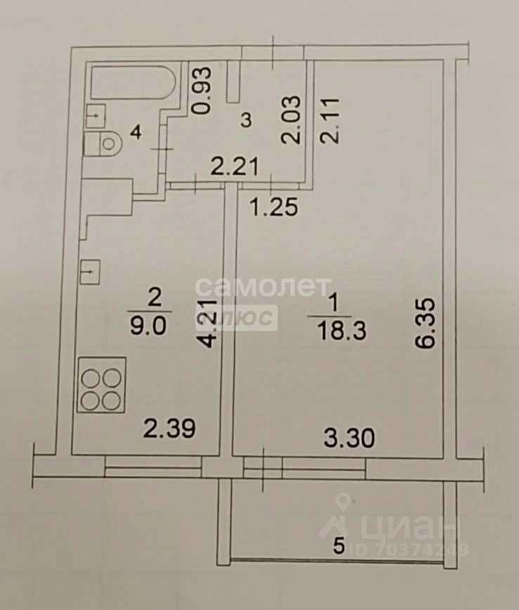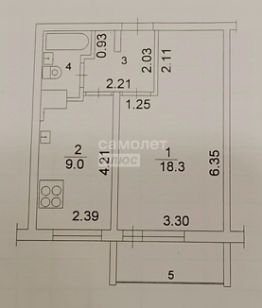 - общая площадь 36,5, жилая 18,3, кухня 9 кв.м;