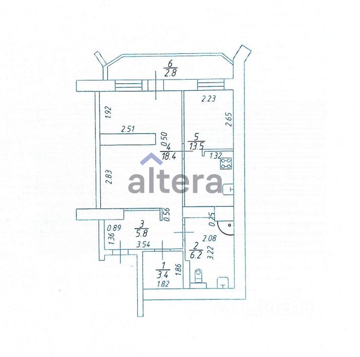 Лоджия: 2,8 м² — застеклена, — можно использовать как дополнительное рабочее или уютное место отдыха