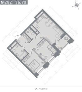 Продаётся 2-комнатная квартира в строящемся доме (Корпус 1), срок сдачи: II-кв. 2028, общей площадью 56.7 кв.м., на 18 этаже.