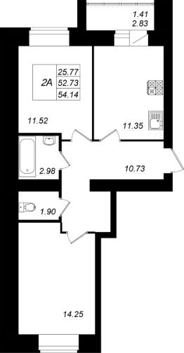 Продаётся 2 комнатная квартира 9 — 54.14 кв. м. Расположена на 2 этаже. Дом построен из силикатного кирпича.
