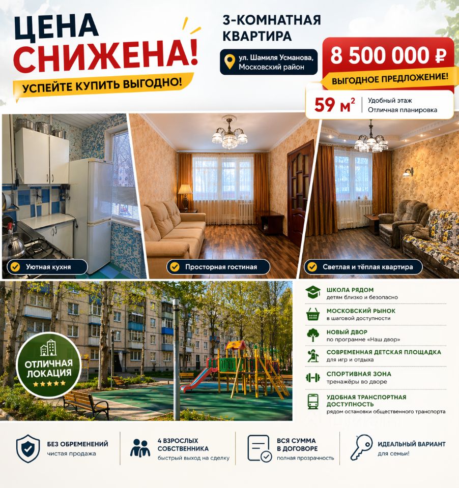 Готова показать объект и ответить на конкретные вопросы по планировке, ремонту и сделке.