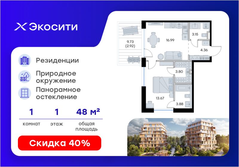 Цена указана при 100% оплате или стандартной ипотеке. Узнайте подробности в Отделе продаж.