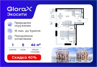 Продается 1-комн. квартира на 5-м этаже в строящемся проекте GloraX Экосити. Общая площадь лота составляет 46,73 кв. м, из которых 13,67 кв. м отведено под жилую и 16,99 кв. м под кухонную зону. Номер квартиры - 29 Преимущества резиденции в квартале "Резиденции": - перегородки межкомнатные перегородки в 1 кирпич, в С/У в 2 кирпича с заведением гидроизоляции на 20 см - потолки - без отделки - полы в помещениях: жилые комнаты, гардеробная, коридор, прихожая, кухня - шумоизоляция пола, стяжка -полы во влажных помещениях - гидроизоляция, стяжка -водоснабжение -ввод ХВС, ГВС, канализации в ближайший СУ/в квартиру - электрический щит - временный, при входе в квартиру - отопление - горизонтальная разводка в полу с установкой - входная дверь - металлическая входная дверь с декоративной накладкой - На территории Урбан-квартала предусмотрено строительство детского сада на 360 мест, школы на 1501 место, детский развивающий центр на 2000 мест. - Рядом с с кварталом Резиденции запланировано строительство детского сада на 360 мест, школы с детским развивающим центром на 1501 место - На первых этажах домов Урбан-квартала запроектированы коммерческие помещения - предусмотрены места для супермаркетов, бытовых услуг, кафе. - Собственный комьюнити-центр для жителей Урбан-квартала - Клуб Резидентов для жителей квартала Резиденции - бульвар "Река между камней" с плейхабом для детей, амфитеатром, спортивными зонами, аллеей достижений. Всем посетителям будет доступен иммерсивный маршрут и AR-игры. - Тайная тропа вдоль которой расположатся зоны тихого отдыха, йоги и медитаций - 2 смотровые площадки - Снейк-ран - Круговой спортивный маршрут - Специальные зоны для выгула собак - В Урбан-квартале предусмотрено строительство 2 многоэтажных паркингов на 300 и 360 машиномест. Всем жителям проекта доступен и привычный плоскостной паркинг вокруг территории проекта с возможностью в приложении дома получить информацию о наличии парковочных мест. - В квартале Резиденции предусмотрен подземный паркинг на 260 машиномест GloraX Экосити — это совершенство города в первозданной природе. Наполненный возможностями квартал, в котором вы не выбираете между городом или природой, семьей или работой, отдыхом или спортом, — вы берете всё сразу. Каждая семья, каким бы составом она ни жила, найдет для себя идеальное пространство. Планировочные решения разнообразны, также как и возможности отделки от черновой до полностью с ремонтом. Здесь запроектированы квартиры с просторной кухней-гостиной, чтобы семья могла комфортно проводить время вместе. Квартиры сдаются с современной качественной отделкой, что позволяет после сдачи дома сразу начать жить, избежав долгих самостоятельных ремонтов. Цветовые решения и стиль отделки можно выбрать при покупке квартиры. Резиденции сдаются в черновой отделке, вы могли реализовать ваши самые смелые дизайнерские решения. Каждая резиденция это база, на которой можно выстроить свой личный стиль. Цена указана при 100% оплате или стандартной ипотеке. Узн
