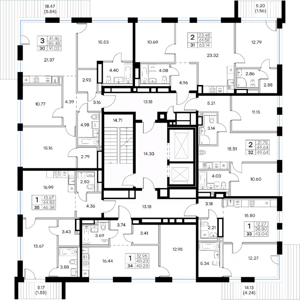 Продается 3-комн. квартира на 6-м этаже в строящемся проекте GloraX Экосити. Общая площадь лота составляет 91,02 кв. м, из которых 41,46 кв. м отведено под жилую и 21,37 кв. м под кухонную зону. Номер квартиры - 30