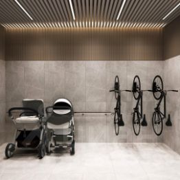 • Удобные колясочные в каждой секции: Больше пространства в вашей резиденции.
