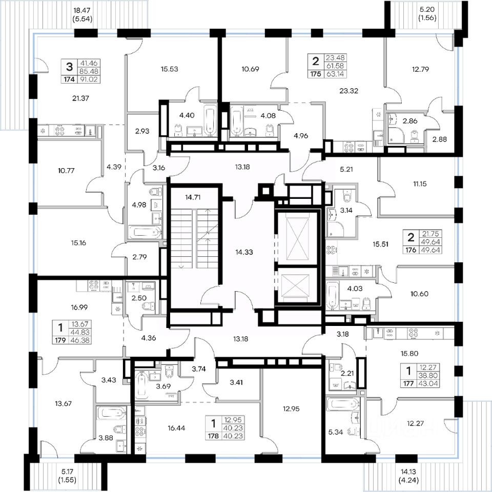 Продается 1-комн. квартира на 3-м этаже в строящемся проекте GloraX Экосити. Общая площадь лота составляет 43,04 кв. м, из которых 12,27 кв. м отведено под жилую и 15,80 кв. м под кухонную зону. Номер квартиры - 177