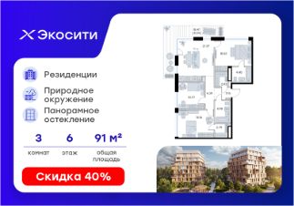 Продается 3-комн. квартира на 6-м этаже в строящемся проекте Экосити. Общая площадь лота составляет 91,02 кв. м, из которых 41,46 кв. м отведено под жилую и 21,37 кв. м под кухонную зону. Номер квартиры - 192
