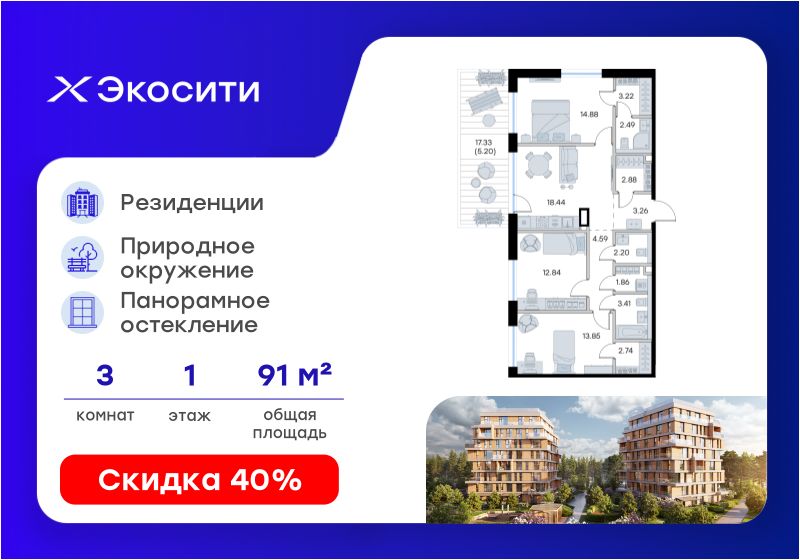 Цена указана при 100% оплате или стандартной ипотеке. Узнайте подробности в Отделе продаж.