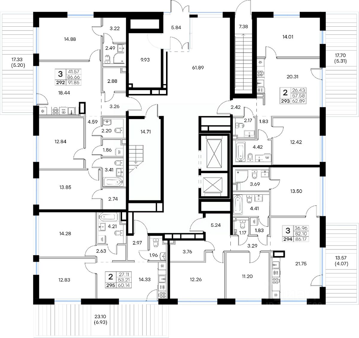 Продается 3-комн. квартира на 1-м этаже в строящемся проекте Экосити. Общая площадь лота составляет 91,86 кв. м, из которых 41,57 кв. м отведено под жилую и 18,44 кв. м под кухонную зону. Номер квартиры - 292