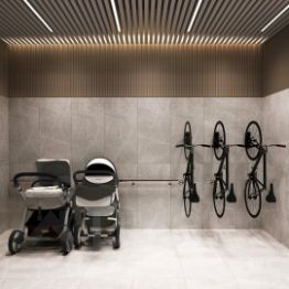 • Удобные колясочные в каждой секции: Больше пространства в вашей резиденции.