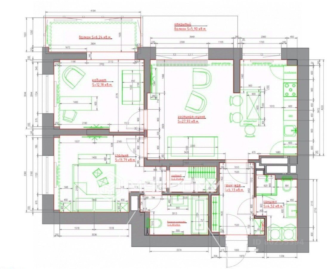Продуманная планировка: кухня-гостиная 27.93 кв.м., комната 12.18 кв.м., мастер-спальня 13.79 кв.м. (есть свой санузел + гардеробная комната), плюсом есть еще один санузел (вход из прихожей), два балкона (открытый и остекленный). Таким образом, такое планировочное решение полностью обеспечит все потребности современного человека.