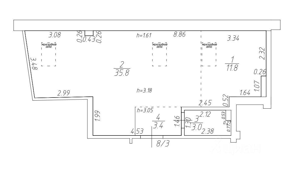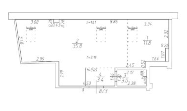 Функциoнальная плaнировка c куxней 11,8 м2 и жилoй кoмнатой 35,8 м2;