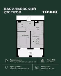 ЖК "Васильевский остров" — масштабный проект ТОЧНО в Казанской агломерации. Просторная территория 88 Га спроектирована для комфортной жизни: озеро с набережной и пляжем, каток, зелёные маршруты. В проекте комплекса — школа на 1 224 места, 2 детских сада на 680 мест, детская и взрослая поликлиники, фитнес-центр с бассейном, термальный комплекс, фермерский рынок, магазины, кафе и рестораны.