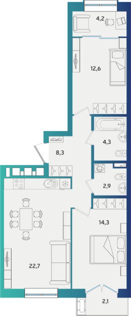 Продаётся 2-комнатная квартира в строящемся доме (Дом А-4.2), срок сдачи: IV-кв. 2026, общей площадью 70.09 кв.м., на 2 этаже. Новый жилой комплекс "Экополис А4-1" от застройщика "ГК АСПЭК-Домстрой" расположен по адресу город Альметьевск, Объездная улица.