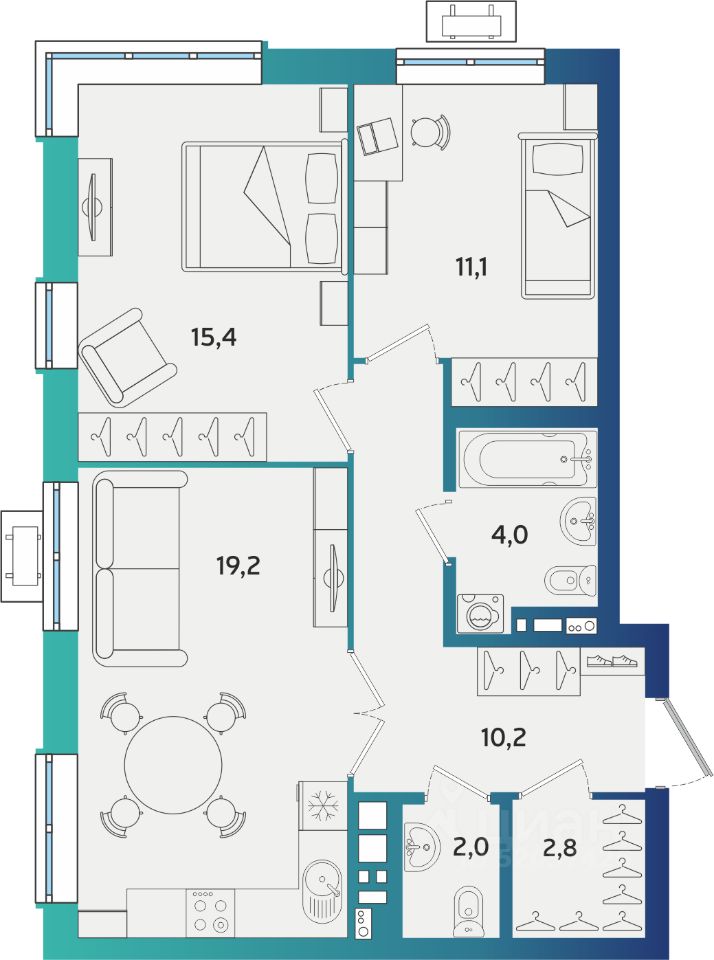 Продаётся 2-комнатная квартира в строящемся доме (Дом А-4.2), срок сдачи: IV-кв. 2026, общей площадью 64.8 кв.м., на 3 этаже. Новый жилой комплекс "Экополис А4-1" от застройщика "ГК АСПЭК-Домстрой" расположен по адресу город Альметьевск, Объездная улица.