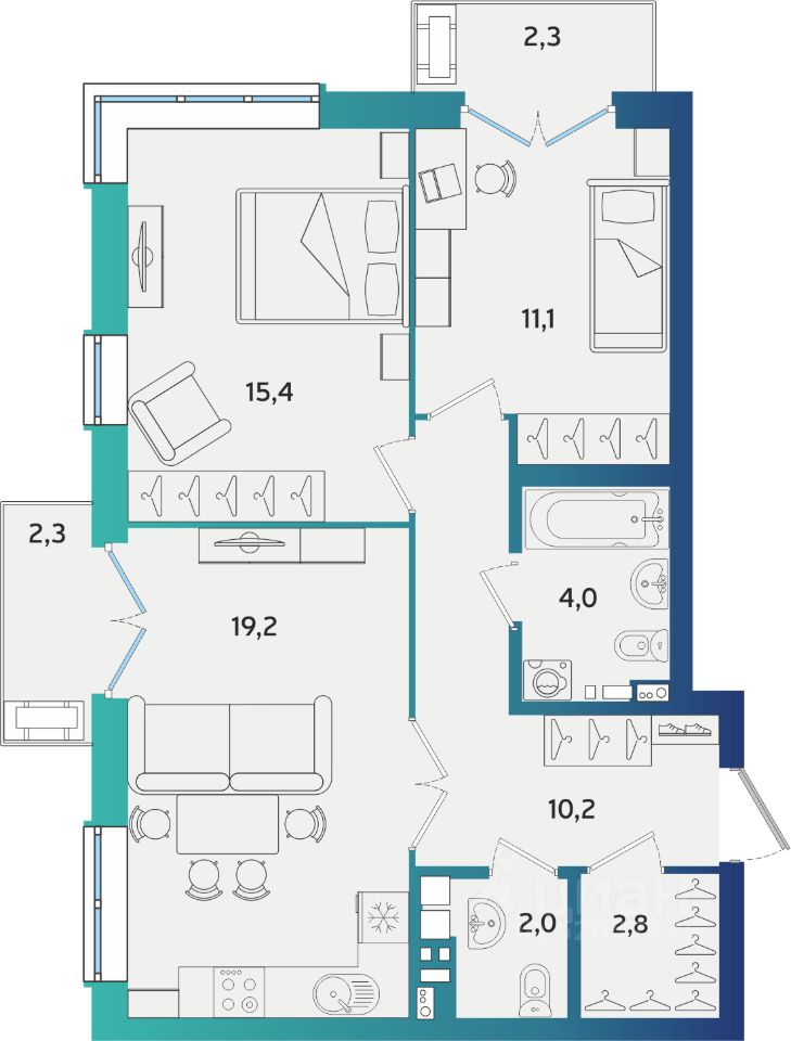 Продаётся 2-комнатная квартира в строящемся доме (Дом А-4.2), срок сдачи: IV-кв. 2026, общей площадью 66.18 кв.м., на 4 этаже. Новый жилой комплекс "Экополис А4-1" от застройщика "ГК АСПЭК-Домстрой" расположен по адресу город Альметьевск, Объездная улица.