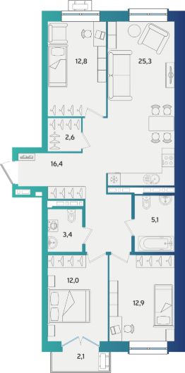 Продаётся 3-комнатная квартира в строящемся доме (Дом А-4.2), срок сдачи: IV-кв. 2026, общей площадью 90.69 кв.м., на 2 этаже. Новый жилой комплекс "Экополис А4-1" от застройщика "ГК АСПЭК-Домстрой" расположен по адресу город Альметьевск, Объездная улица.